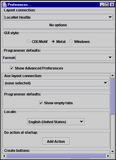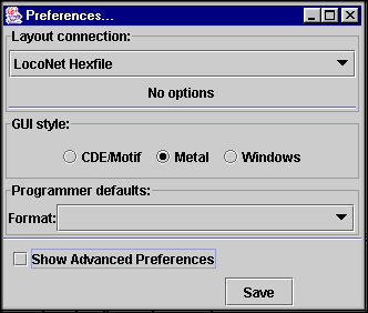Note: If you have been using a LocoNet hexfile up to this point, don't forget to edit your preferences to what you are actually using as your interface. If you forget to do this, the panel will not see the layout and you might spend hours trying to trouble-shoot wiring problems that don't exist (Don't Ask !!)