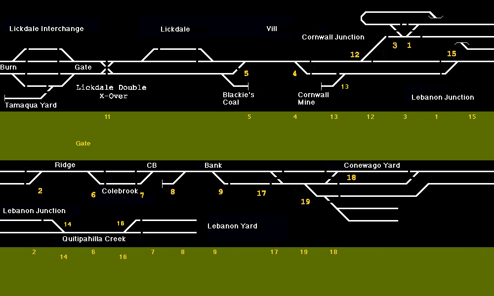It can be as complex as you want. It is your railroad. The graphic above is from my Cornwall Railroad. As you can see I've added location names, block gaps, and switch numbers on the graphic. I have tried to make the panel as self-explanatory as possible since I have several different dispatchers that visit my railroad for op sessions. It looks kind of plain right now but when it has all of the signals, Detector indicators, switches, levers, and panel lights, it will fill out. I imagine when Digitrax has its transponding completed, it will be possible to actually track (no pun intended) a train by its transponder. This is what it looks like for m dispatcher during an op session.
