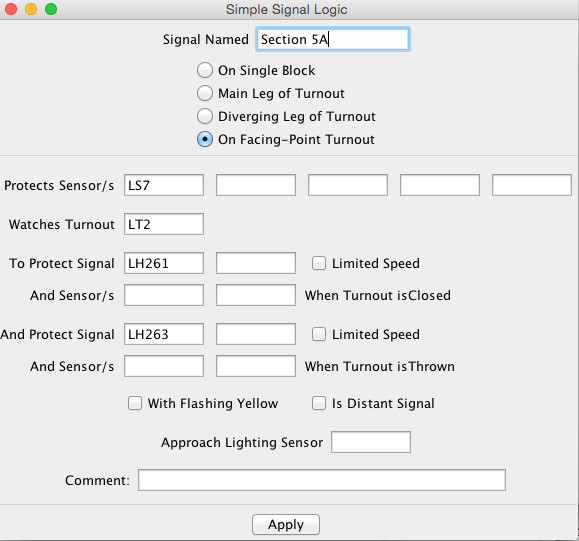 In the case of Nick's railroad, the logic for each signal had