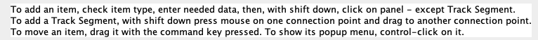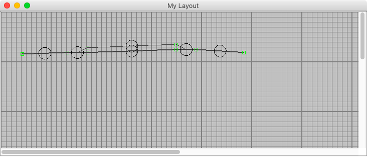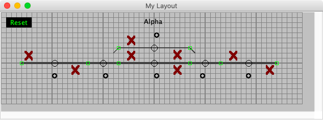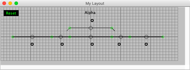 Add a left hand turnout and a right hand turnout to the panel. Rotate the right hand turnout 180 degrees, add two end bumpers and draw the track between the connection points. The demo uses the mainline option for the main track. When the connection points turn green, they are valid.