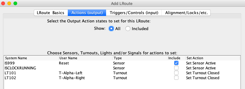 Note: The Reset sensor is Internal because it is not physically on the layout. It is used for internal JMRI purposes. It could easily be a physical push button on the layout. Then the system name would be LS999.