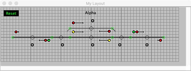 The basic panel is now done. It has turnouts, occupancy sensors and blocks. It can simulate sending turnout commands to the layout and respond to simulated occupancy changes. It includes the ability to initialize the layout after panel loading using Routes, LRoutes and Logix.