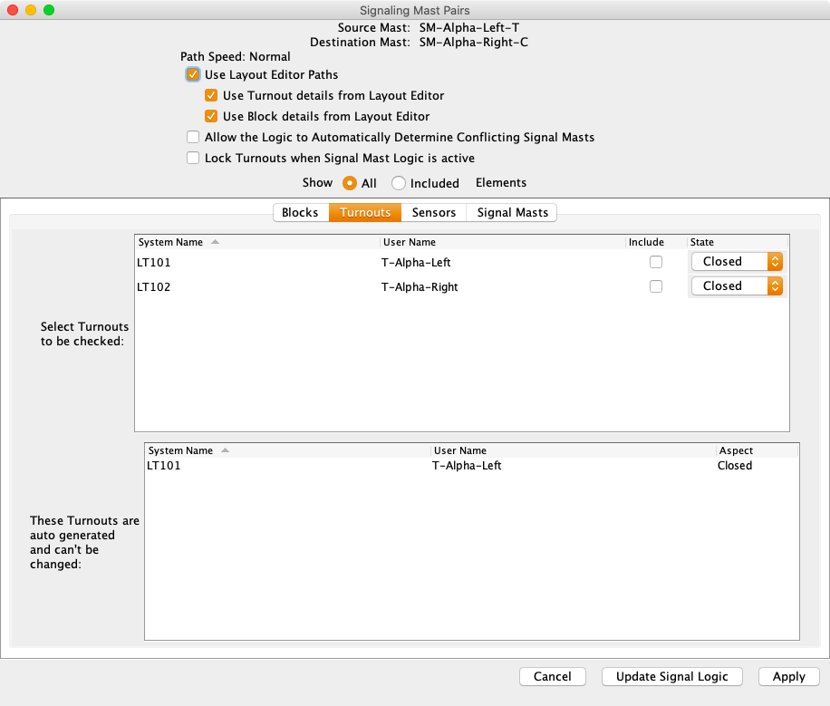 When the auto generate it done, the signal mast logic table will be shown.