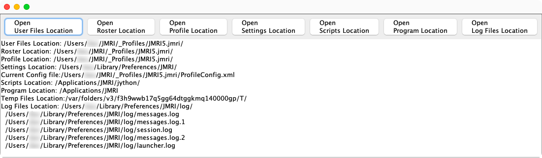 Display the JMRI file location information.