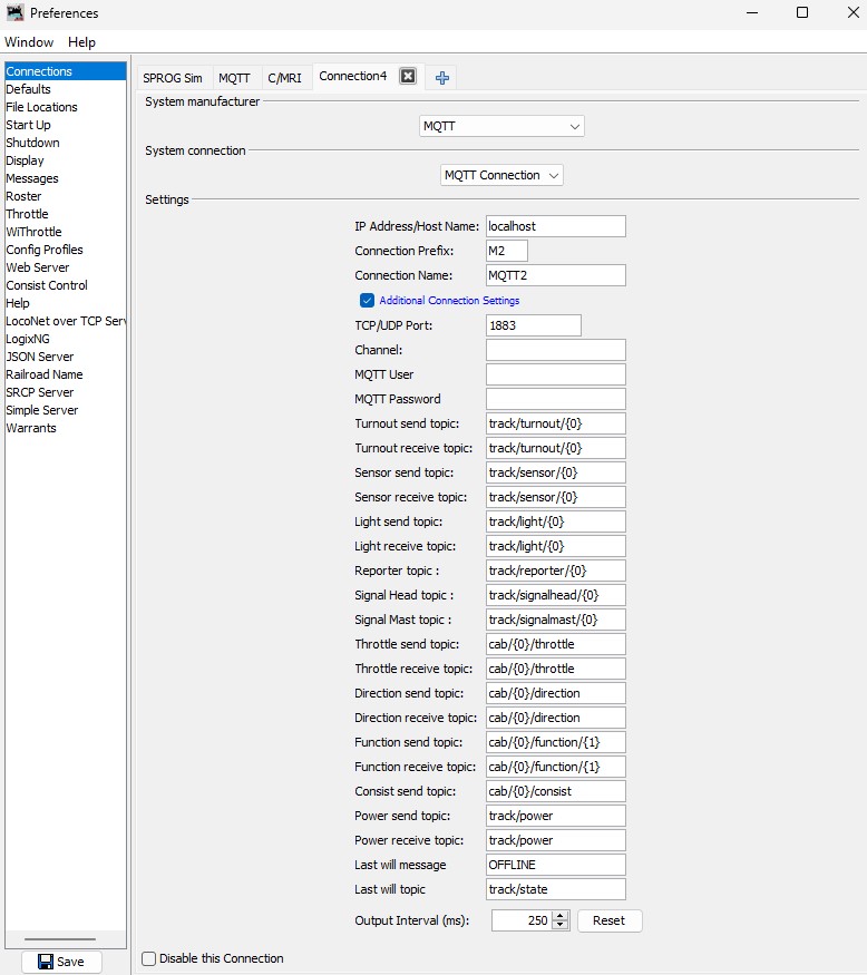 Now enter "localhost" as the Host Name on the MQTT JMRI Connection Preferences page. You are now connected!