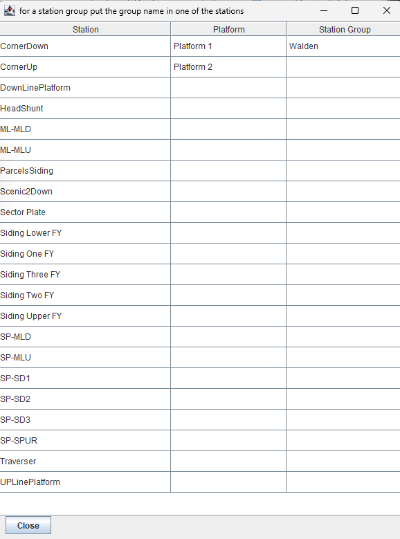 - the new stations must be entered in the block table as described in a previous section