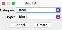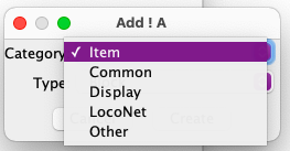 Then select which action or expression is to be created. The actions and expressions are organized in categories, so first select the Category. The default category is Item.