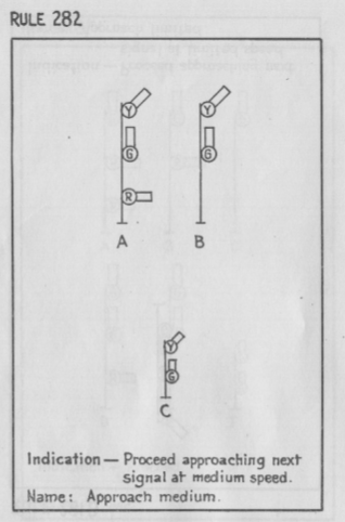 The picture to the right shows an example, Rule 282 from the 1946 AAR rule book (Aspect: Approach Medium).