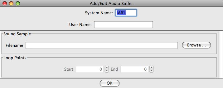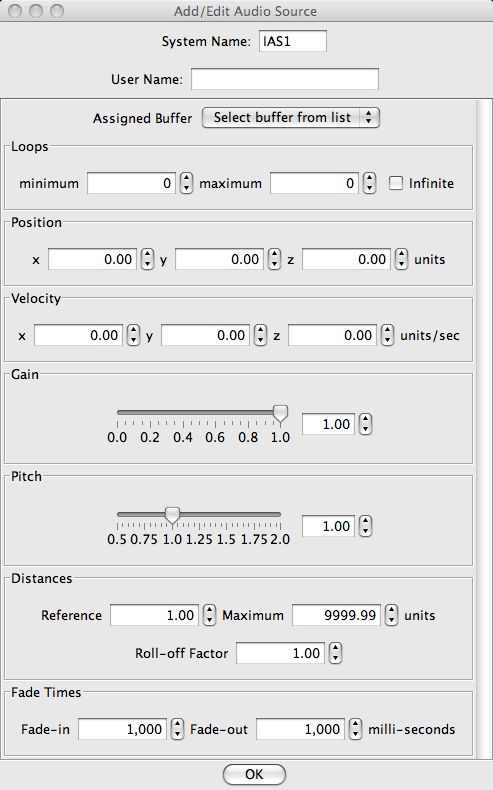 You must enter a unique System Name. System Names for Audio objects have a set pattern: they start with "IAL" for "Internal Audio Listener", "IAB" for "Internal Audio Buffer", or "IAS" for "Internal Audio Source".