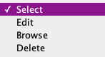 The dropdown combo box has 3 actions that can be applied to the current LogixNG tables row.