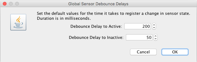 Debounce Delays, activated from the Sensor Table "Defaults > Global Debounce Delays..."