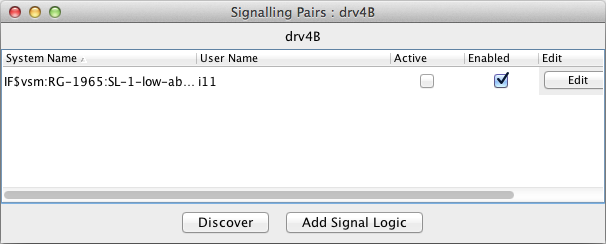 After you clicked on one of the "Edit Logic" buttons in the Signal Mast Table, the Signaling Pairs window appears. Choose one of the displayed lines and click the "Edit" button to open the Edit window.