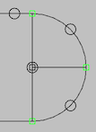 A three-way can be drawn using a pair of regular turnouts. Once a turnout has been created, its type cannot be changed. Changing the type of a turnout requires removing and recreating the turnout. Drawn turnout parts may be lengthened, shortened, or repositioned by dragging connection points with the meta key pressed, and the entire turnout may be repositioned by dragging the center circle with the meta key pressed.