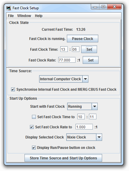 This window ( Tools > Clocks > Set up Fast Clock ) provides for setting options for this fast clock system.