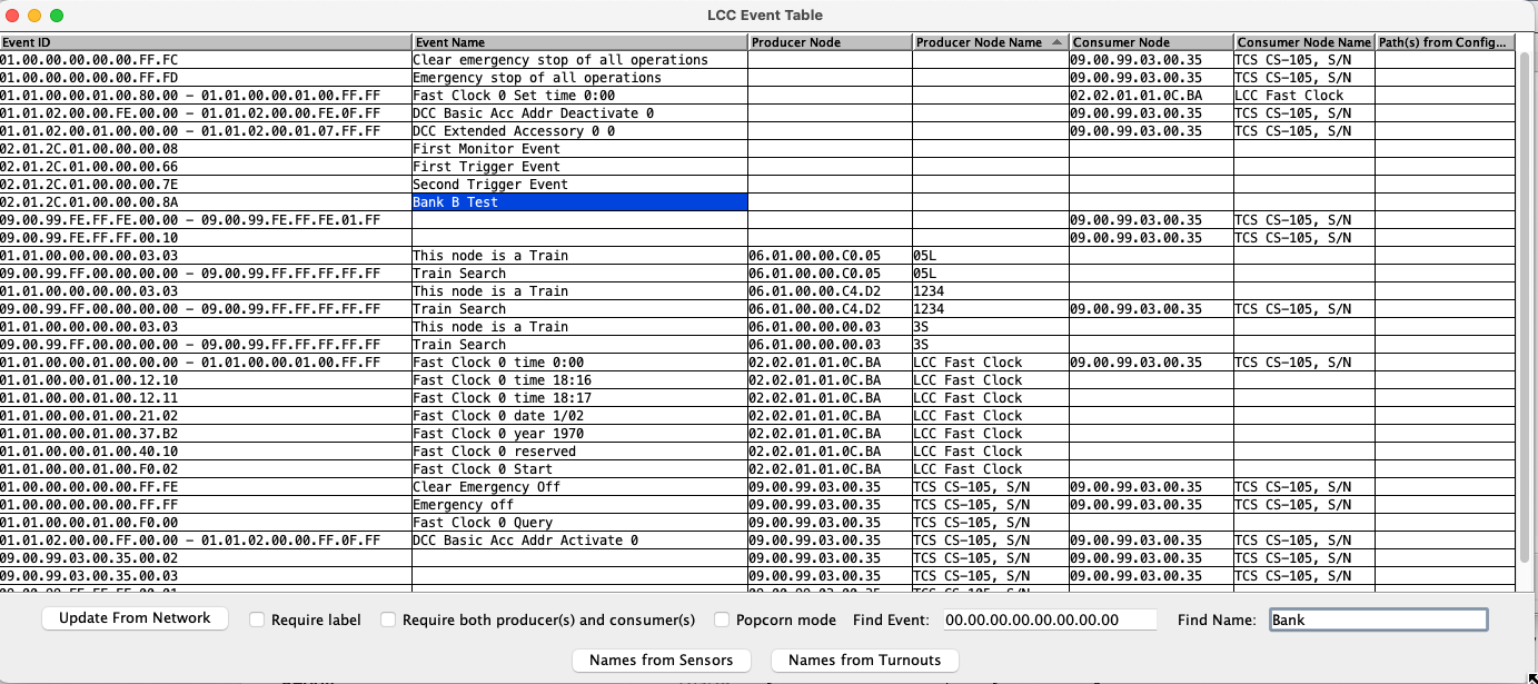 OpenLCB Traffic Monitor as an additional aid when the Event box is checked therein.