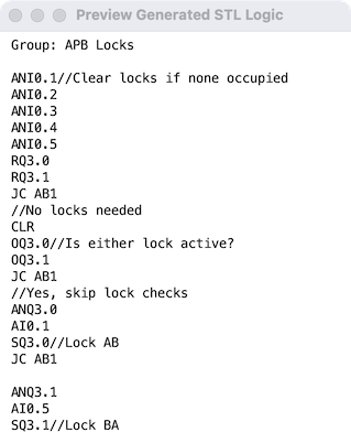 The preview option displays the generated STL logic for the current Group in a separate window. The window cannot be closed but will be hidden when the option is not active. The content is refreshed when the Percent button is pressed or a different group is selected from the Group list. After a Store, it will contain the STL logic for the last group.