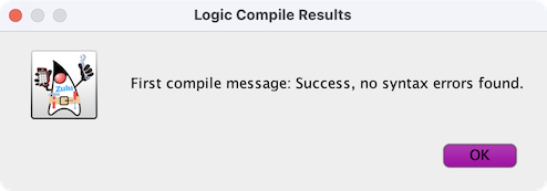 If Have the STL Editor do the reboot is selected, the node will be rebooted. When the reboot and compile finish, the first syntax message will be displayed. Here is a good result.