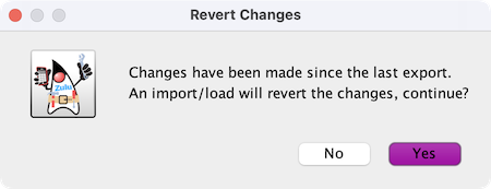 The Import, Refresh, node selection and backup imports check for unsaved changes. A confirmation dialog is displayed if necessary.