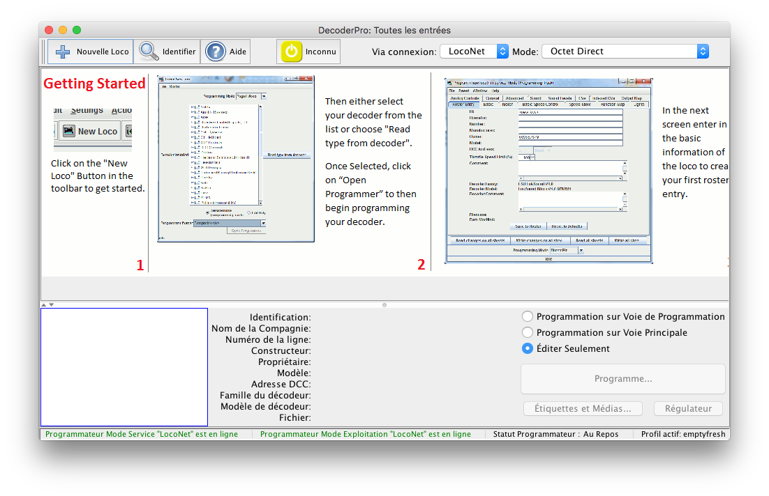Pour plus d'informations sur la configuration et l'utilisation de DecoderPro, s'il vous plaît voir les pages du manuel DP. Plus d'informations disponibles sur comment travaille DecoderPro , y compris la façon d'ajouter de nouveaux Types de Décodeur.
