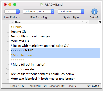 Mais avec Git il y a moins de besoin pour ces derniers. Donc, nous supprimons ces lignes. Si lors de travaux sur un fichier vous en voyez, habituellement dans l'en tête, vous pouvez les effacer.