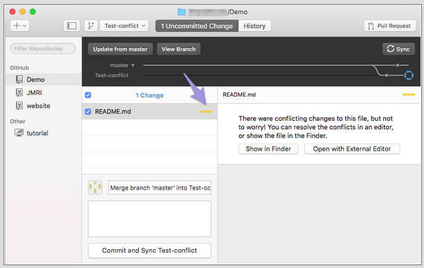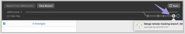 Cette nouvelle proposition devra encore être soumise á JMRI, en lui donnant un titre approprié, ex: Conflit résolu et cliquez Commit ( et Sync ). Cette soumission supplémentaire sera ajoutée á votre PR et fera partie de la proposition que les maintenanciers verront. Vous ne devriez pas garder de conflit de fusion pendant la nuit, car les maintenanciers n'ont pas de possibilité de les corriger pour vous et ils devront l'ignorer jusqu'á vous l'ayrésolu.