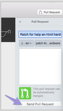 Une fois que vous avez une copie de vos changements sur GitHub, il est facile de générer un pull request (Lien vers GitHub)
