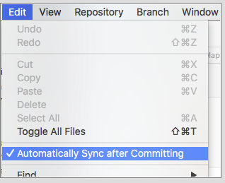 Sync en haut á droite, choisissez Sync ( Cmd-S ) depuis le menu