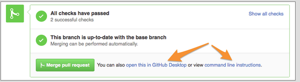 Dans quelques cas, le site web GitHub fournit des instructions disponibles sur la droite du pull-request lui-même. Regardez près du bas du lien de discussion, dans le dernier bloc d'information. La bonne chose á propos de ceux-ci est qu'elles comportent automatiquement les bons noms de branche, etc, inclus.