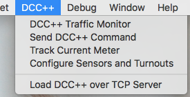 - Sur l'ordinateur hôte sélectionnez "DCC++ Over TCP Server" depuis le menu DCC++.
