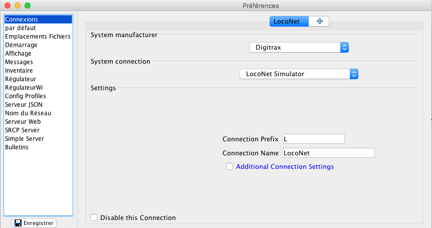 JMRI : Volet Préférences