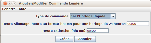 Ajouter/éditer Commande Lumière qui apparaît. Vous pouvez entrer autant de