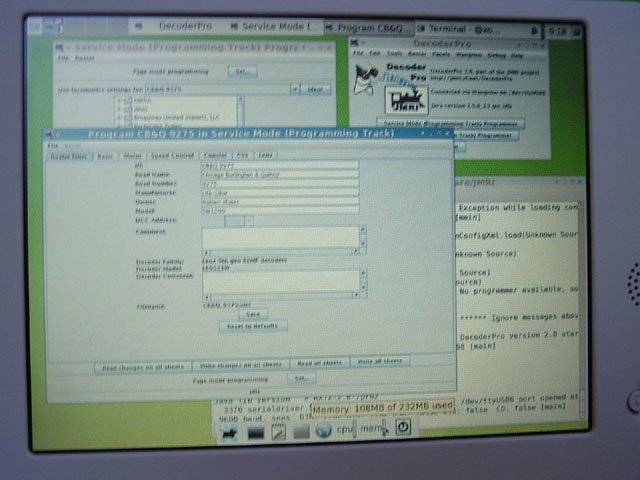 Here is a long view showing pretty much the whole XO running DecoderPro.