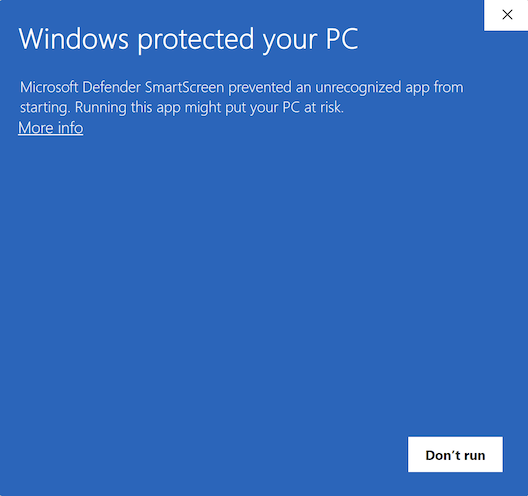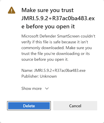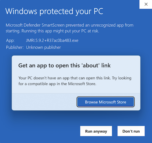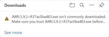 After downloading a JMRI installer program, a trust message might be displayed due to the low volume of downloads. The following details are based on Microsoft Defender. Other 3rd party anti-virus packages have similar procedures for handling the warnings.