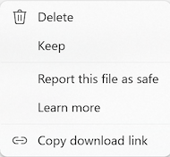 Moving the mouse over the message will display an option to delete the download or click on the 3 dots to see more options.