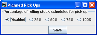 Select type of load from first drop-down list (Based on the type of rolling stock accepted). From second drop-down list select either Empty or Load, the press to list of acceptable loads. Repeat as necessary. Select a load then press to remove that load. You may remove all loads by pressing the