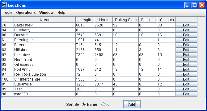 of the Classification/Interchange location, note most of the window is greyed out until the location is added. The location name must be unique; the program will not allow two locations with identical names. However, if you want more than one location to have the same name for your manifests and switch lists, add a hyphen and a number to the locations name. For example, "Boston-1" and "Boston-2" will print as "Boston". The program will remove the hyphen and number when printing manifests and switch lists.