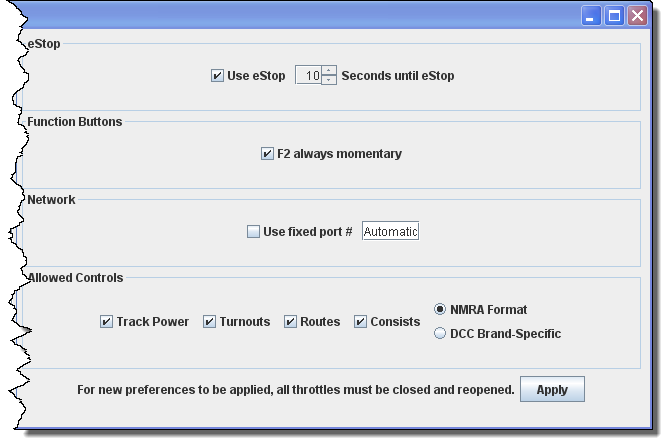 | Wi Throttle | Allows you to set up a Wi Throttle settings |