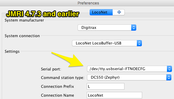 Since JMRI 4.7.6 If you're having trouble getting your DCC programmer to work, try checking that the "Defaults" under "Preferences" are set to your hardware system. The reason: This version of JMRI (and all later) provides more options for "default systems": If you have multiple sets of hardware attached, which should be used for throttles, for programming, etc. JMRI tries to guess the right settings for these when you upgrade to this version, but apparently it sometimes gets that wrong (we haven't been able to track that down yet). Setting them manually fixes any wrong guesses.